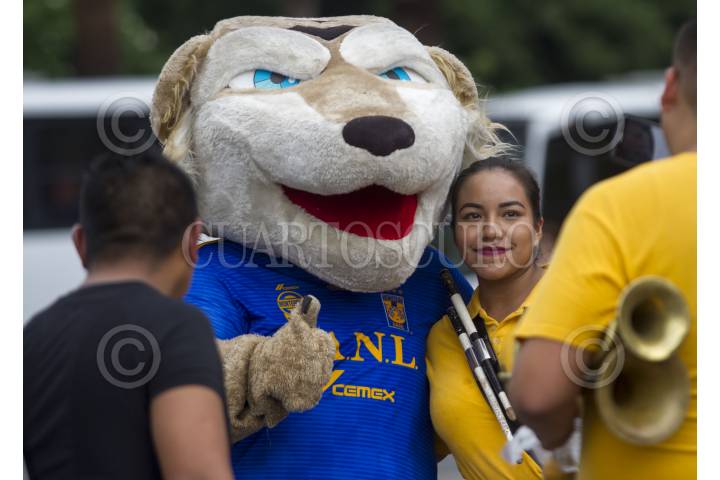 MONTERREY, NUEVO LEÓN, 30SEPTIEMBRE2018.- Las Botargas de los equipo de Tigres y Rayados realizaron un encuentro en la explanada de los héroes para fomentar la Paz entre aficionados de ambos equipos, derivado de las recientes riñas entre las barras rivales, las cuáles han dejado heridos de gravedad. FOTO: GABRIELA PÉREZ MONTIEL /CUARTOSCURO.COM