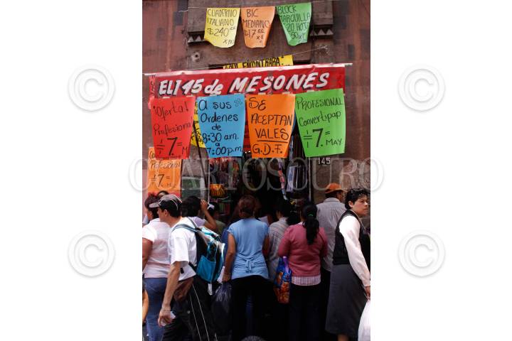 MÉXICO, D.F., 22AGOSTO2009.- En los establecimientos en donde se venden cuadernos para el regreso a clases del Centro Histórico se aprecian las ofertas y rebajas intentando así atraer a sus posible clientes. FOTO: MOISÉS PABLO/CUARTOSCURO.COM