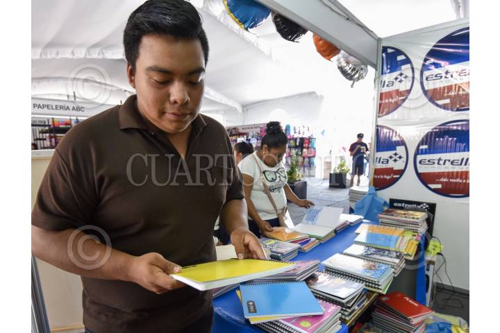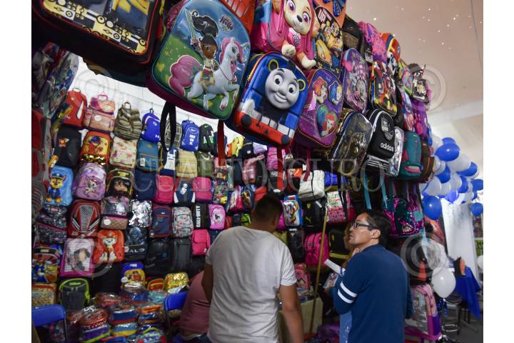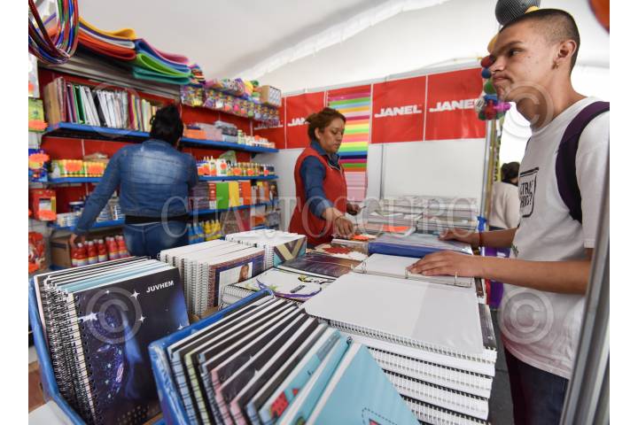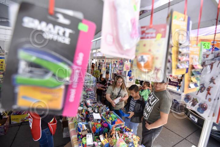 TOLUCA, ESTADO DE MÉXICO, 01AGOSTO2019.- Útiles escolares, uniformes, zapatos, mochilas son algunas cosas que se pueden encontrar en la Feria de Regreso a Clases que se instaló en la Plaza de los Mártires, padres de familia acuden a comparar precios para poder surtir su lista de útiles escolares a unas semanas del regreso a clases. FOTO: CRISANTA ESPINOSA AGUILAR /CUARTOSCURO.COM