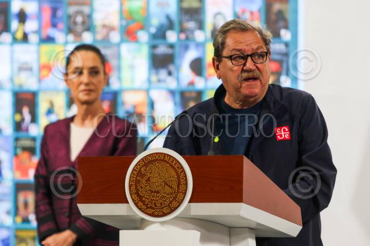 CIUDAD DE MÉXICO. 02MAYO2025.- mañanera del pueblo encabezada por la Presidenta Claudia Sheinbaum Pardo en el salón Tesorería del Palacio Nacional. anuncio de inversiones de Unilever así como la presencia del director del Fondo de Cultura Económica, Paco Ignacio Taibo II. FOTO: VICTORIA VALTIERRA/CUARTOSCURO.COM