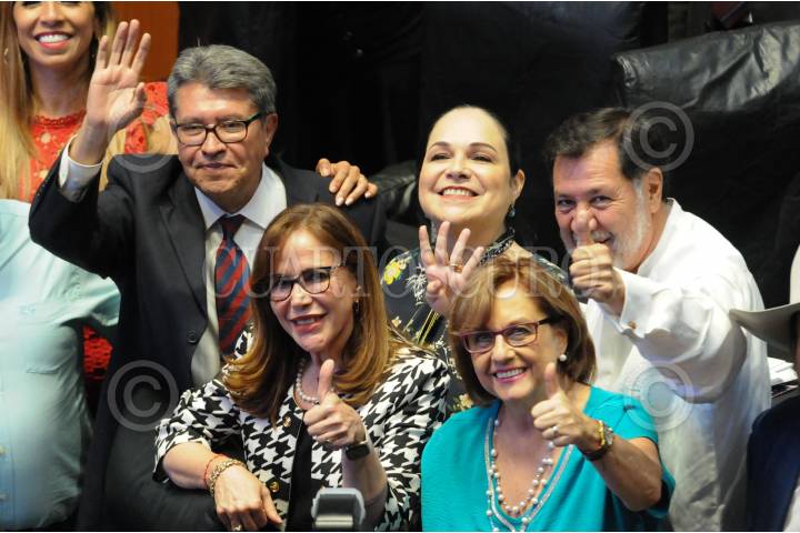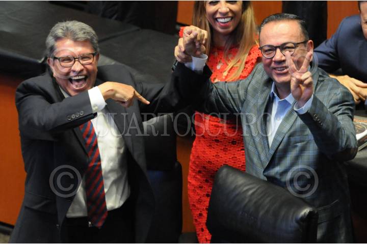 Senadores de Morena se despiden de Ricardo Monreal y Gerardo Fernández Noñora, quienes participarán en la encuesta de Morena.