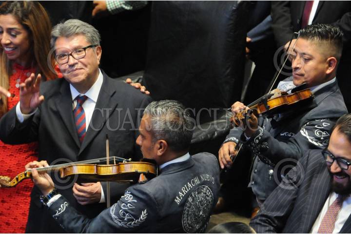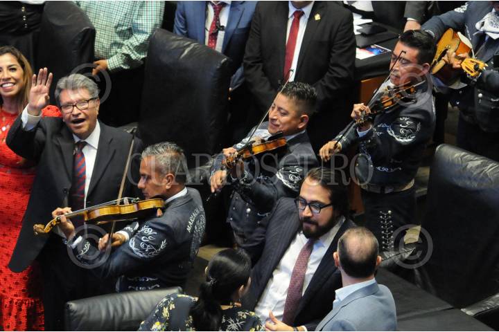 Un grupo de mariachis entraron al pleno del Senado para despedir a Ricardo Monreal.