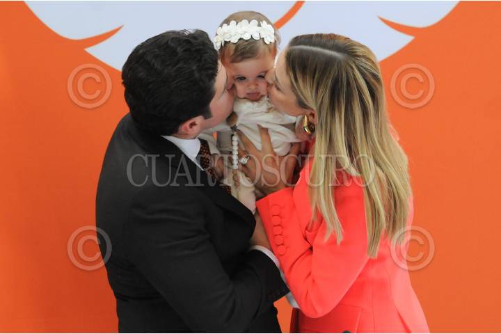 CIUDAD DE MÉXICO, 12NOVIEMBRE2023. - Samuel García y su esposa Mariana Rodríguez, besan a su hija al término del registro del gobernador con licencia como aspirante a la candidatura presidencial de MC. FOTO: DANIEL AUGUSTO /CUARTOSCURO.COM