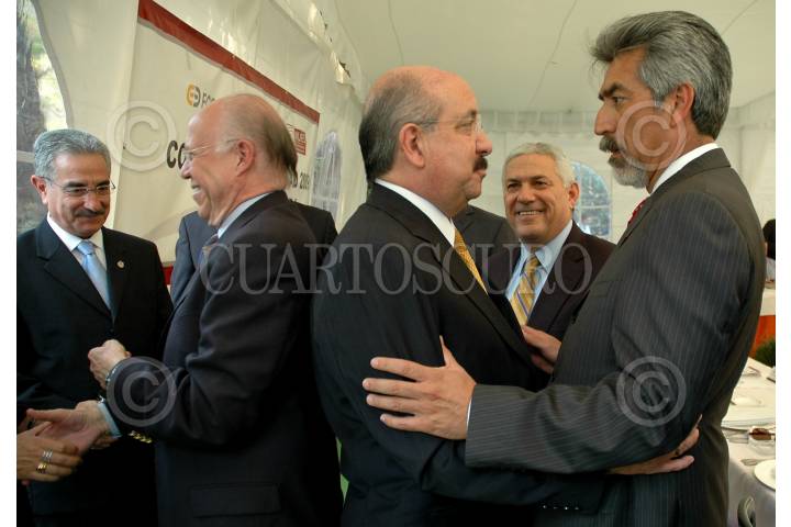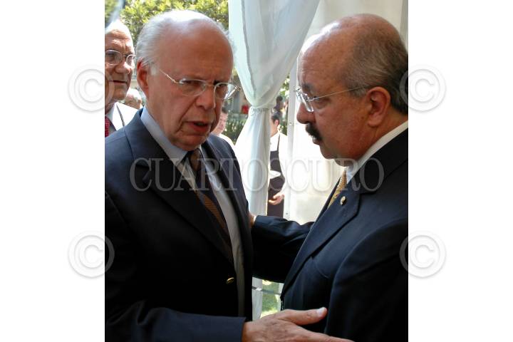 MÉXICO, D.F., 24ABRIL2009.- José Narro, rector de la UNAM saluda a Rafael López, secretario general de la Asociación Nacional de Universidades e Instituciones de Eduación Superior (ANUIES) durante el anuncio de la convocatoria ECOESAD 2009 para ingreso a licenciaturas en la modalidad a distancia. FOTO: RODOLFO ANGULO/CUARTOSCURO.COM