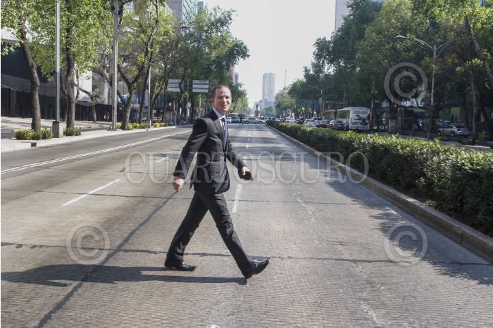 MÉXICO, D.F., 19ENERO2015.- Ricardo Anaya, presidente nacional del Partido Acción Nacional, cruza avenida Reforma, a la altura del Senado de la República y con dirección a la Torre Azul. FOTO: ISAAC ESQUIVEL /CUARTOSURO.COM