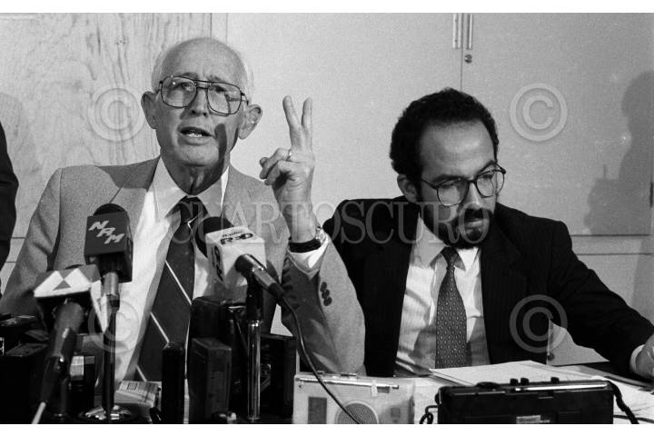CIUDAD DE MÉXICO, 18MAYO2016.- Luis H. Alvárez murió a los 96 años de edad, fue el primer presidente municipal de oposición en Chihuahua en el año de 1983 y ex líder del PAN, muchos lo consideraban como el ideólogo del partido blanquiazul. La imagen es del 22 de febrero de 1990 durante su conferencia semanal en el PAN, lo acompaña el ex presidente Felipe Calderón. FOTO: JULIO CANDELARIA /ARCHIVO/CUARTOSCURO.COM