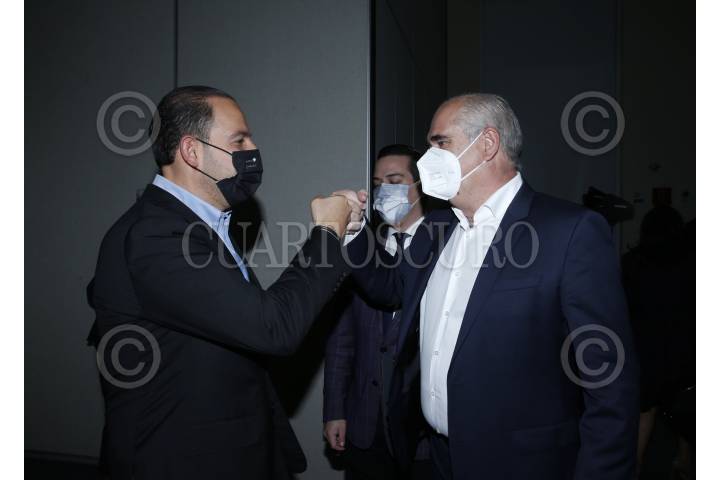 CIUDAD DE MÉXICO, 06NOVIEMBRE.- Marko Cortés, líder Nacional del Partido Acción Nacional y Héctor Larios, Secretario General, durante la conferencia de prensa en donde exigió que Estados Unidos asuma su responsabilidad en el tema de tráfico de armas hacia nuestro país, así mismo hablo sobre las afectaciones que tiene el populismo en la sociedad mexicana. FOTO: ROGELIO MORALES /CUARTOSCURO.COM