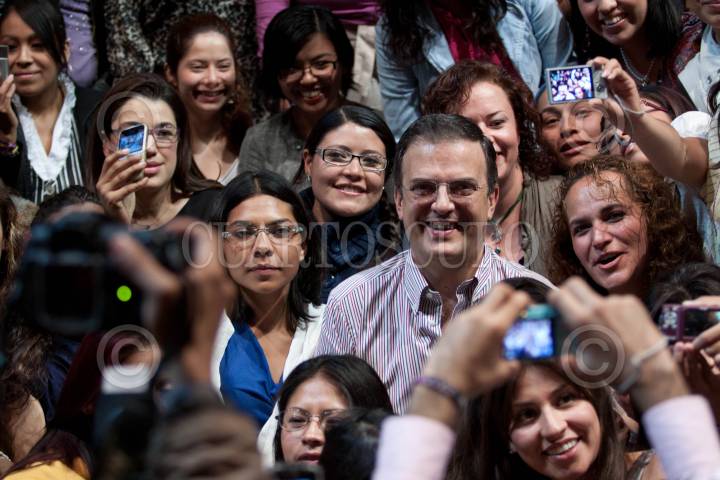 MÉXICO, D.F., 29OCTUBRE2011.- Rosalinda Bueso y Marcelo Ebrard Casaubón, Jefe de Gobierno, asistieron a el evento “Mil mujeres lideresas con Marcelo Ebrard”, en el WTC, las cuales fueron convocadas a través de las redes sociales. FOTO: MOISÉS PABLO/CUARTOSCURO.COM