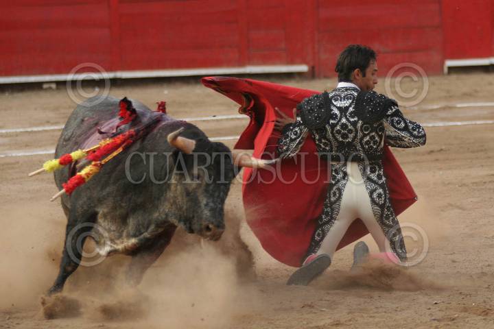 VILLAHERMOSA, TABASCO, 22ABRIL2007.- El matador de toros Fernando Ochoa lidiando a Cheto de 470 kilogramos, por lo que optubo el rabo y cola, corrida de toros celebrada en la monumental Plaza Villahermosa. FOTO: MARCO POLO GUZMÁN HERNÁNDEZ.