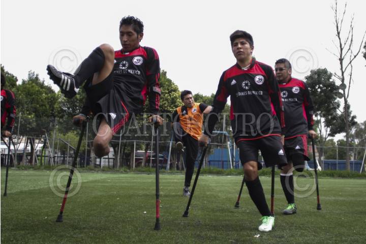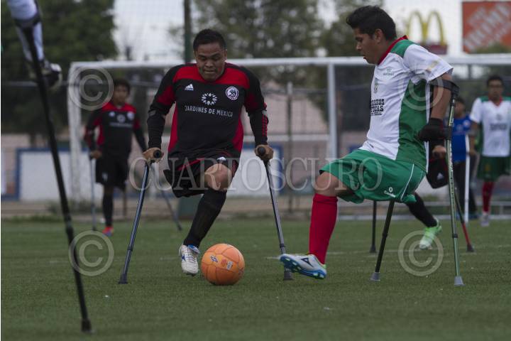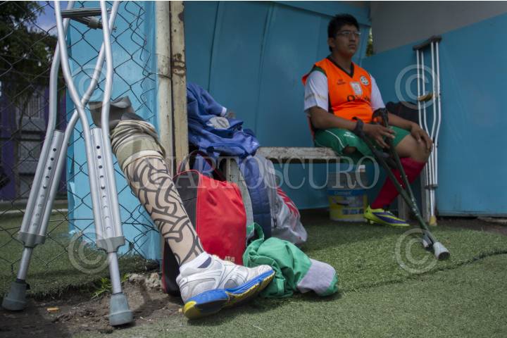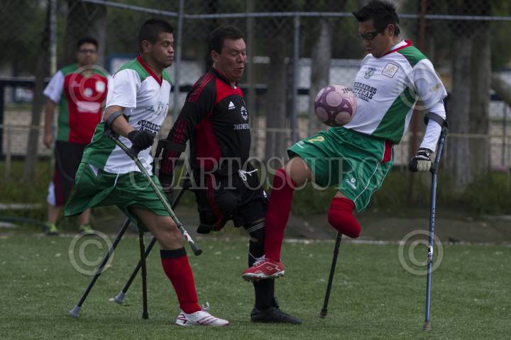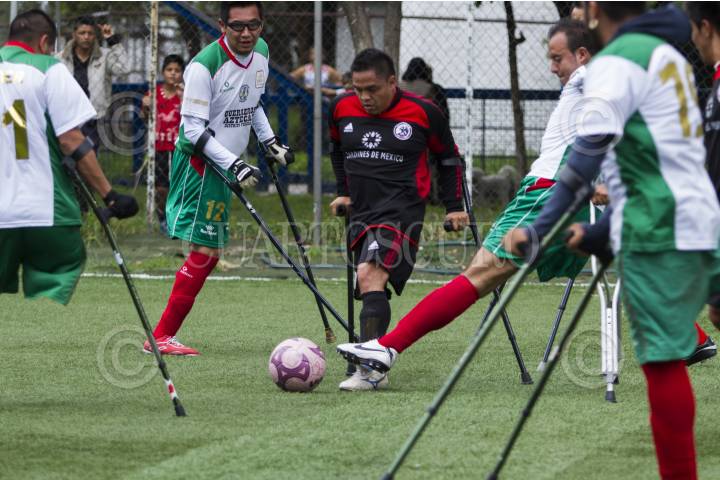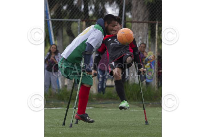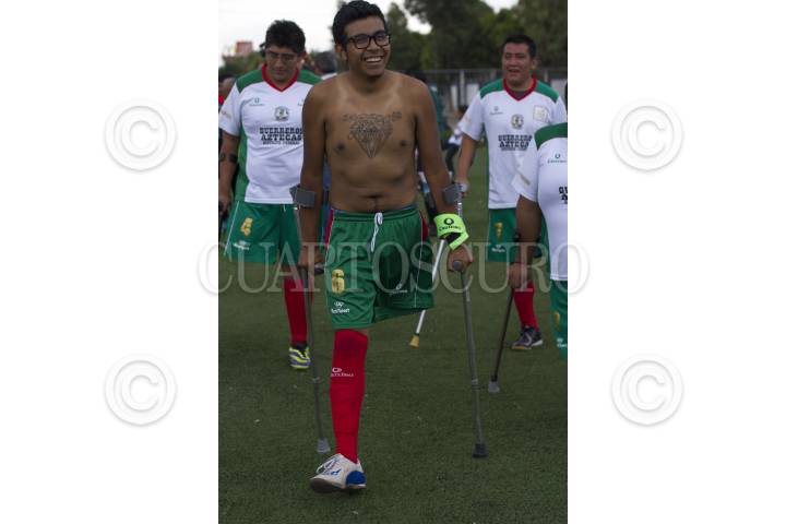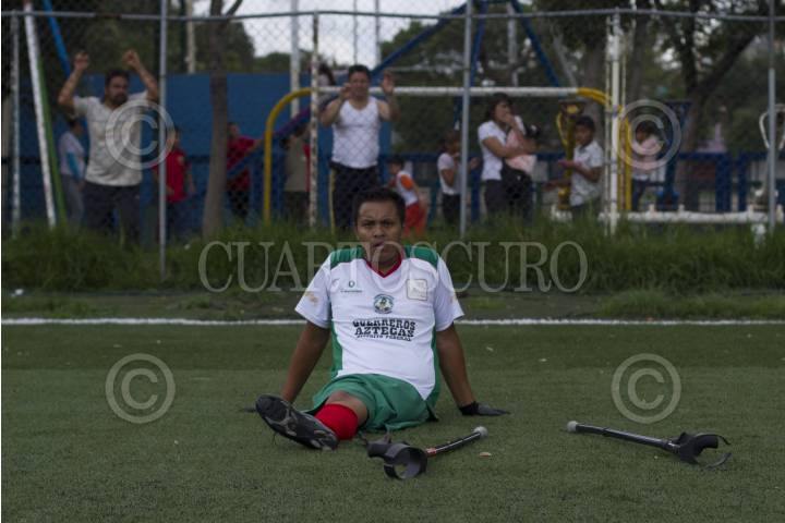 MÉXICO, D.F., 07JUNIO2014.- Los equipos de fútbol de amputados, Guerreros Aztecas del Distrito Federal se enfrentaron ante los Dragones del Estado de México en un partido donde los Dragones salieron triunfadores. Dicha liga esta conformada por jóvenes y adultos que tienen ganas de jugar al fútbol aunque les falte alguna parte del cuerpo debido a una amputación o padecimiento de nacimiento. FOTO: ENRIQUE ORDÓÑEZ /CUARTOSCURO.COM