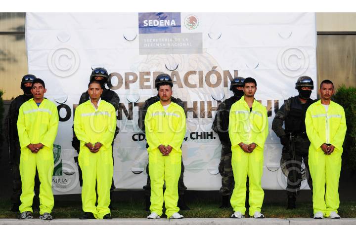 CIUDAD JUAREZ, CHIHUAHUA, 25SEPTIEMBRE2009.- La Sedena detuvo a cinco integrantes del comando que provocó la masacre en centros de rehabilitación de Ciudad Juárez y que son presuntos miembros del grupo criminal Gente Nueva, ligados a El Chapo. FOTO: CUARTOSCURO.COM