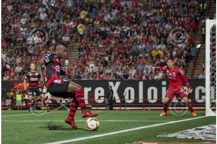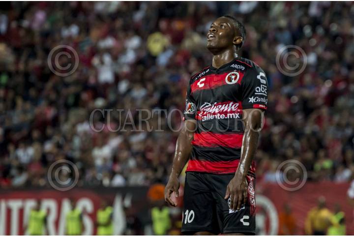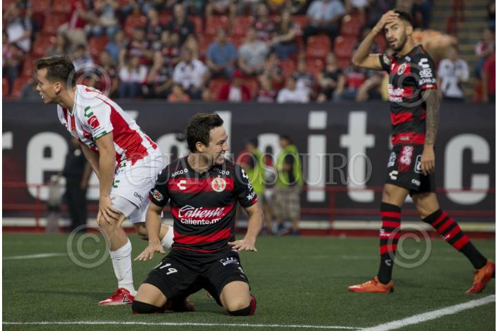 TIJUANA BAJA CALIFORNIA, 31AGOSTO2018.-Andrés Castillo lamenta una ocasión fallada durante el partido entre Xoloitzcuintles de Tijuana contra los Rayos de Necaxa realizado en el estadio Caliente, como parte de la Jornada 08 del Torneo de Apertura 2018 de la Liga MX. Marcador final: Tijuana 1, Necaxa 0. FOTO: OMAR MARTÍNEZ /CUARTOSCURO.COM