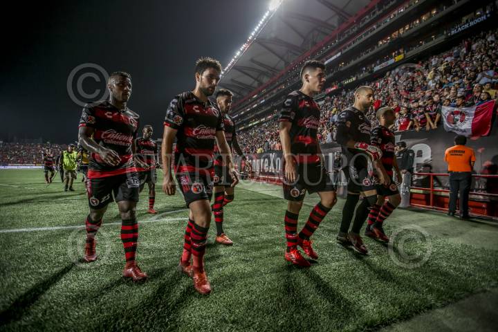 TIJUANA BAJA CALIFORNIA, 31AGOSTO2018.- El equipo fronterizo sale del terreno de juego durante el partido entre Xoloitzcuintles de Tijuana contra los Rayos de Necaxa realizado en el estadio Caliente, como parte de la Jornada 08 del Torneo de Apertura 2018 de la Liga MX. Marcador final: Tijuana 1, Necaxa 0. FOTO: OMAR MARTÍNEZ /CUARTOSCURO.COM