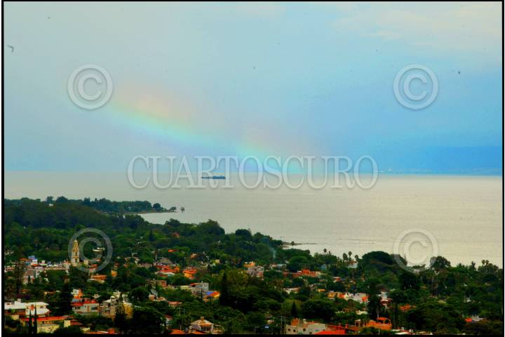 AJIJIC,JALISCO29deJUNIO2009.- Un espectacular arco iris apareció sobre el lago Chapala después de una ligera lluvia esta mañana FOTO:MARIA DI PAOLA BLUM/CUARTOSCURO.COM