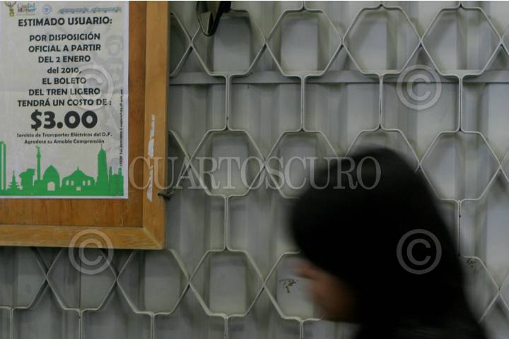 MÉXICO, D.F., 31DICIEMBRE2009.- El tren ligero aumentará su tarifa a partir del próximo sábado dos de enero a tres pesos por viaje. FOTO: IVÁN STEPHENS/CUARTOSCURO.COM