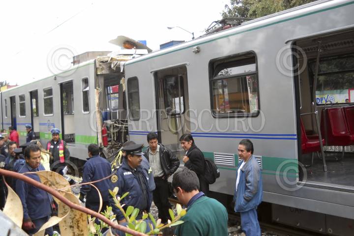 MÉXICO, D.F., 30AGOSTO2011.- Por lo menos 20 personas resultaron lesionadas luego del choque entre dos convoyes del tren ligero en la estación Huichapan, en el cruce de avenida México y 20 de Noviembre en la Delegacion Xochimilco. FOTO: LUIS CARBAYO/CUARTOSCURO.COM