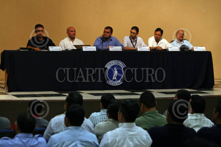 VILLAHERMOSA, TABASCO, 01ABRIL2009.- En el auditorio del Colegio de Policía se lleva a cabo el taller denominado “Diagnostico y Gestión para la Prevención” siendo impartido por Carlos Limas Limas del departamento de Ejecución de Proyectos de Prevención Zona Sur, Jorge Recio Yrogoyen subdirector de Ejecución de Proyectos de Prevención de la Secretaría de Seguridad Pública Federal, Miguel Ángel Romero Castillo del Departamento de Estudios de Prevención Comunitaria e Israel Castillo Pérez subdirector de Estudios de Prevención Motivacional. FOTO: MARCO POLO GUZMÁN HERNÁNDEZ/CUARTOSCURO.COM