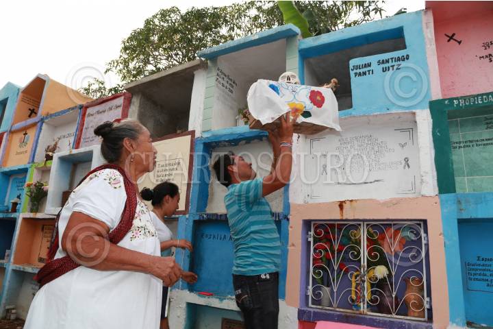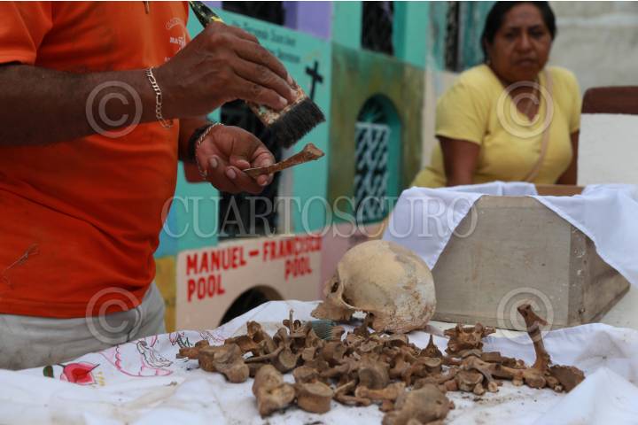 Previo a la celebración del Día de Muertos, decenas de familias se dan cita en el panteón de Pomuch, municipio de Hecelchakán en Campeche, para realizar la tradicional "Limpieza de los santos restos".