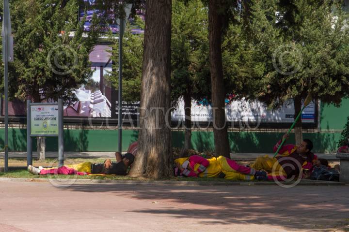 CIUDAD DE MÉXICO, 15FEBRERO2019.- Empleados de limpia toman un descanso a la sombra de los árboles. Solo en la ciudad, 10 mil personas se dedican a este oficio, algunos de ellos no reciben las prestaciones de ley e incluso un salario. FOTO: ROGELIO MORALES /CUARTOSCURO.COM