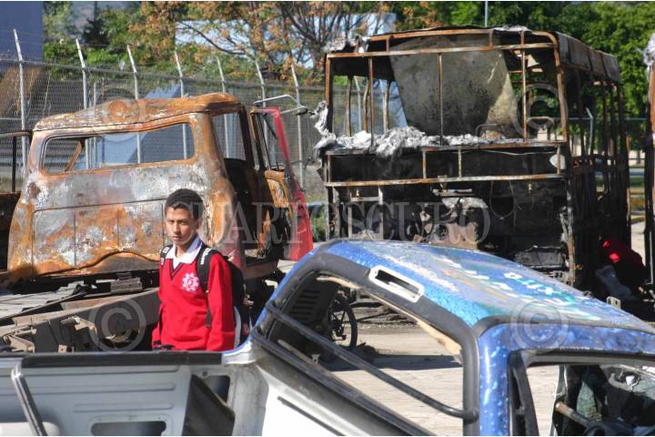 OAXACA, OAXACA 21 DE NOVIEMBRE 2006.- Calles aledañas a la universidad autonoma Benito Juarez de Oaxaca son limpiadas por el municipio, no obstante las barricadas continuan, donde estudiantes de primaria y universitarios caminan. FOTO: MAX NUÑEZ/CUARTOSCURO.COM