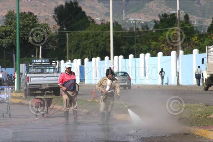 OAXACA, OAXACA 04 DE DICIEMBRE 2006.- En el centro de la ciudad, hay trabajadores pintando y limpiando el primer cuadro de la ciudad. FOTO: MAX NUÑEZ/CUARTOSCURO.COM
