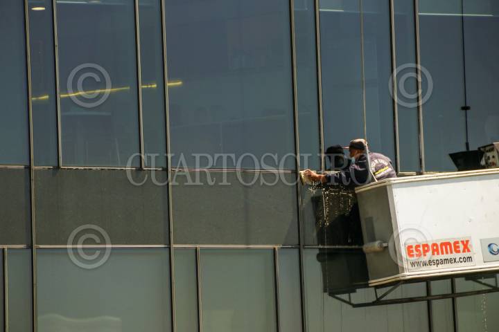 Un limpiavidrios realiz su labor en el edificio de Nacional Financiera en la alcaldía Álvaro Obregón.