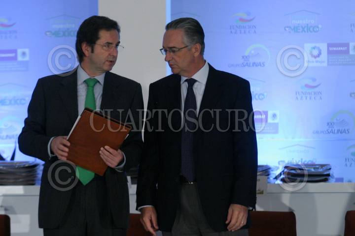 MÉXICO, D.F., 26OCTUBRE2009.- Ricardo Salinas Pliego, presidente de Grupo Salinas, y Juan Rafael Elvira Quesada, Secretario de Medio Ambiente y Recursos Naturales (SEMARNAT) estuvieron presentes en la premiación del concurso ¨Limpiemos Nuestro México¨. FOTO: IVÁN STEPHENS/CUARTOSCURO.COM