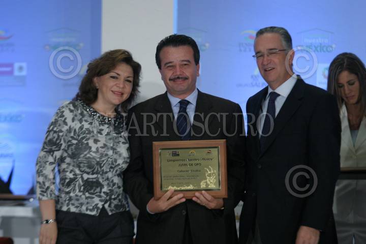 MÉXICO, D.F., 26OCTUBRE2009.- Ivonne Aracelly Ortega Pacheco, gobernadora de Yucatán y Ricardo Salinas Pliego, presidente de Grupo Salinas estuvieron presentes en la premiación del concurso ¨Limpiemos Nuestro México¨. Al centro Jesús Vizcarra Calderón, presidente municipal de Culiacán, Sinaloa recibió el JUMIL de oro por tener una de las ciudades más limpias del país. FOTO: IVÁN STEPHENS/CUARTOSCURO.COM