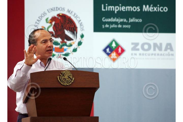 GUADALAJARA, JALISCO. 05JULIO2007.- El presidente Felipe Calderón Hinojosa inició el programa limpiemos México, estrategia nacional de seguridad en la zona de recuperación. FOTO: ALFREDO GUERRERO/CUARTOSCURO.COM