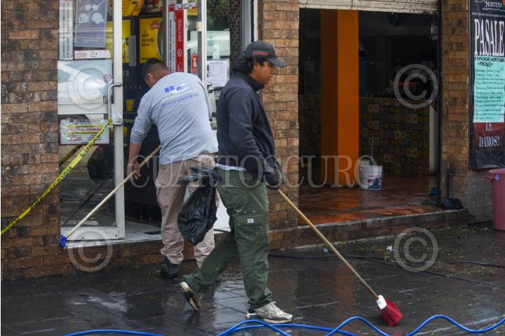 TOLUCA, ESTADO DE MÉXICO, 24JULIO2025.- Empleados de comercios de la calle Rivapalacio en la ciudad de Toluca realizan labores de limpieza después de que los negocios se vieran afectados por la lluvia registrada la noche del miércoles en el Valle de Toluca, el agua entró a 17 comercios. FOTO: CRISANTA ESPINOSA AGUILAR /CUARTOSCURO.COM