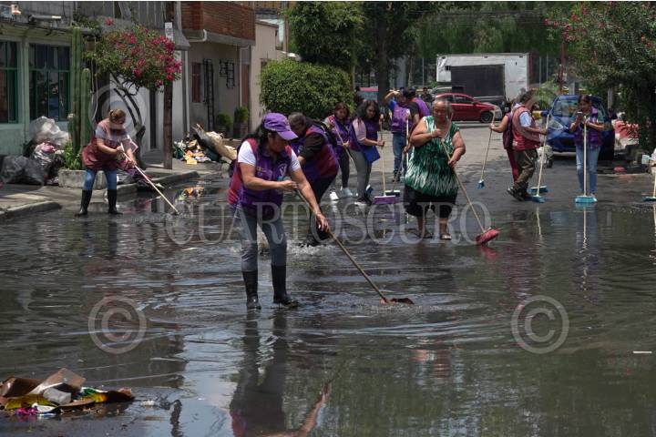 CIUDAD DE MÉXICO 12AGOSTO2025.- Vecinos de la colonia Pensador Mexicano en conjunto con personal del gobierno, realizaron labores de desazolve y limpieza en las calles y casas que resultaron afectados por intensas lluvias de días pasados. FOTO:ROGELIO MORALES /CUARTOSCURO.COM