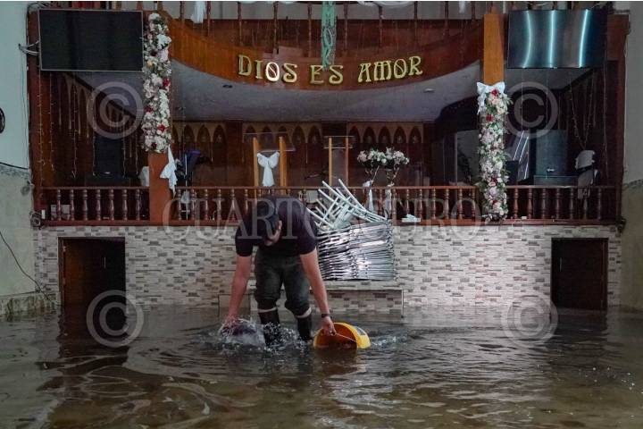 TOLUCA, ESTADO DE MÉXICO, 24JULIO2025.- Un comerciante de la calle Rivapalacio en la ciudad de Toluca realiza labores de limpieza después de que sus negocios se vieran afectados por la lluvia registrada la noche del miércoles en el Valle de Toluca, el agua entró a 17 comercios. FOTO: CRISANTA ESPINOSA AGUILAR /CUARTOSCURO.COM