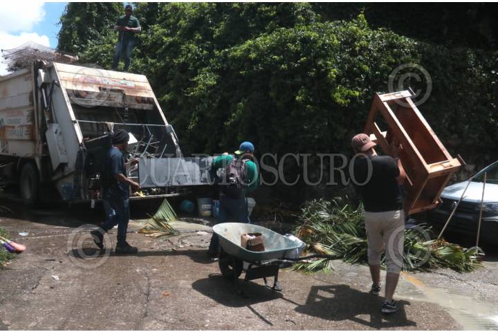 JIUTEPEC, MORELOS, 23AGOSTO2025.- La fuerte lluvia de la madrugada dejo severos daños en los municipios de Jiutepec y Emiliano Zapata. En la imagen, trabajos de retiro de muebles dañados en la unidad habitacional Joya de Agua. FOTO: MARGARITO PÉREZ RETANA/CUARTOSCURO.COM