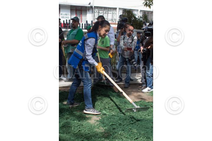 CIUDAD DE MÉXICO, 12OCTUBRE2019.- Claudia Sheinbaum, jefa de Gobierno y Santiago Taboada Cortina, alcalde de Benito Juárez, encabezaron la jornada "Sábado de Tequio" con el propósito de recuperar y mejorar el entorno de las áreas verdes, con el próposito de que los habitantes de la capital cuenten con espacios públicos más límpios y el mejoramiento del entorno de las áreas verdes en la alcaldia. Se realizó en Camellón, avenida Plutarco Elías Calles, colonia Militar Marte. FOTO: MAGDALENA MONTIEL /CUARTOSCURO.COM