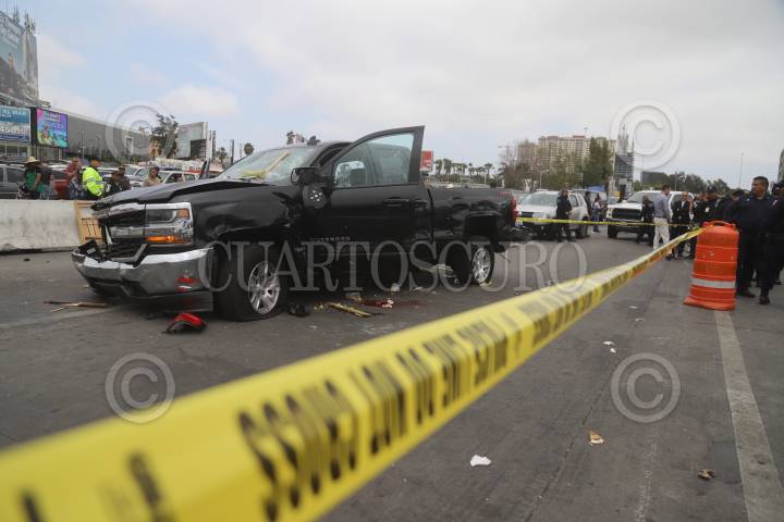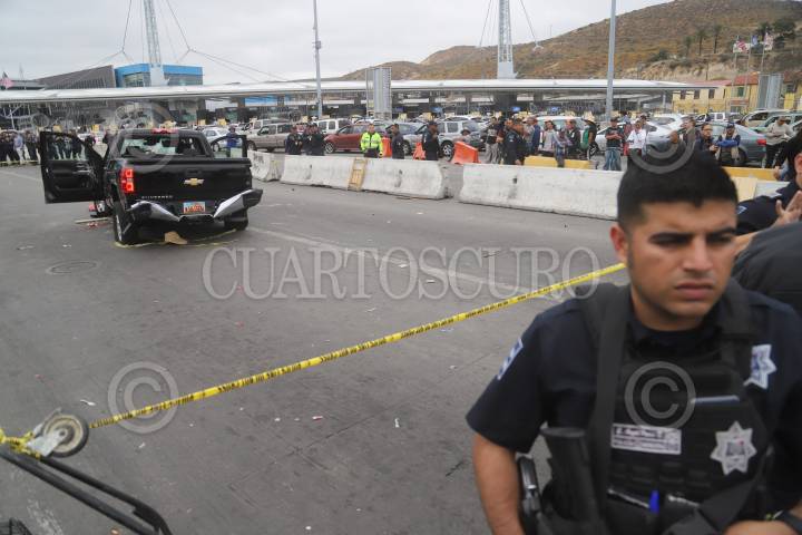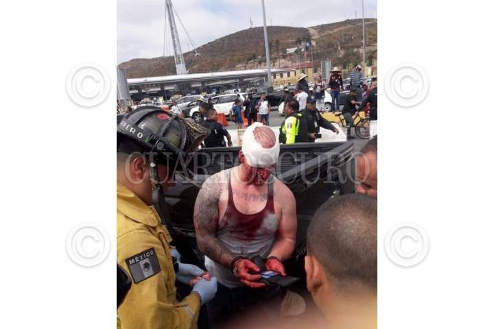 TIJUANA BAJA CALIFORNIA, 13MAYO2019.- Una persona de origen estadounidense fue detenido por agentes de la Policía Municipal tras protagonizar una persecución hasta la garita internacional de San Ysidro. De acuerdo a información oficial, el detenido amagó con una navaja a un ciudadano en la avenida Manuel Márquez de León de la Zona Río. El conductor se dio a la fuga abordo de un vehículo Chevrolet Silverado con dirección a los carriles izquierdos de la garita internacional. Durante la persecución impactó a 17 automóviles, atropelló a 5 personas y a 14 vendedores ambulantes que se encontraban en la garita. Al detenerse el vehículo los comerciantes de la garita bajaron a golpes al conductor, mismo que fue puesto a disposición de agentes del Ministerio Público. FOTO: CUARTOSCURO.COM