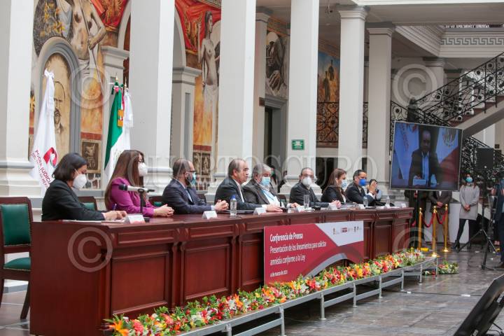 Ricardo Sodi Cuellar Magistrado Presidente del Poder Judicial del Edomex acompañado por Maurilio Hernández presidente de la Junta de Coordinación Legislativa dio q conocer los lineamientos de la Ley de Amnistía en el Estado se Mexico que entrará en vigor el viernes 5 de marzo.