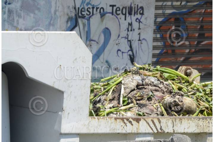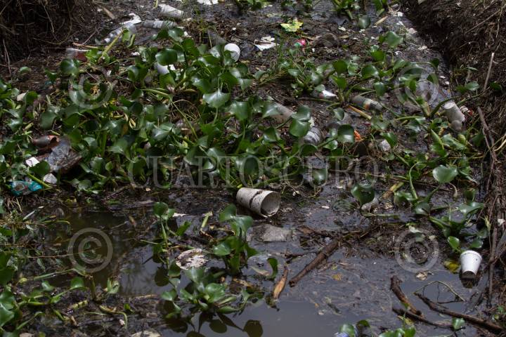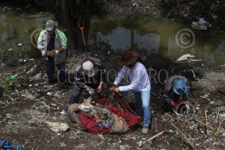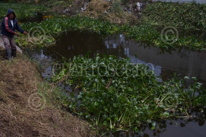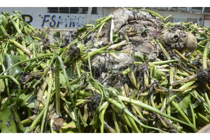 VALLE DE CHALCO, EDOMEX, 27JULIO2015.- En el momento que trabajadores del municipio de Valle de Chalco limpiaban el canal de Acapol sobre avenida José Guadalupe Posadas en la colonia Nueva Ampliación Santa Catarina, descubrieron el cuerpo putrefacto de un hombre que se encontraba entre el lirio. FOTO: ARMANDO MONROY /CUARTOSCURO.COM