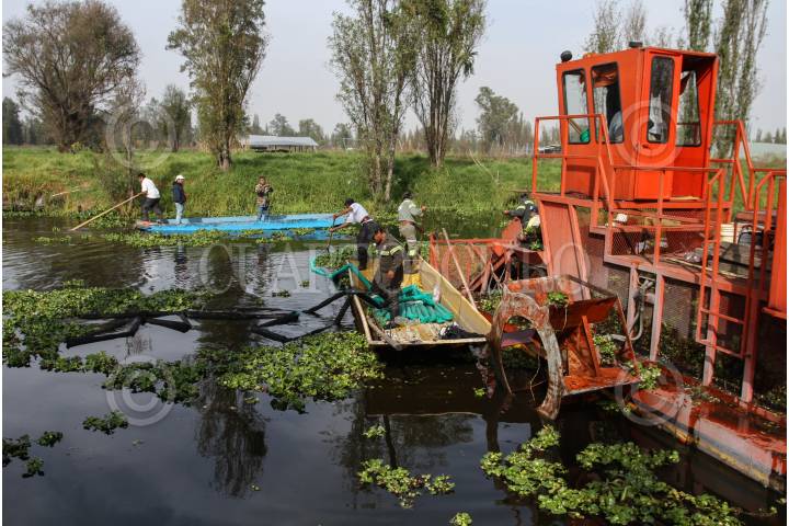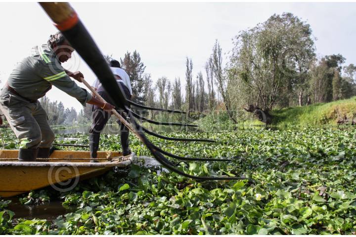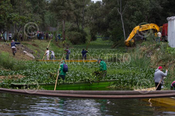 Trabajadores del Sistema de Aguas de la Ciudad de México (SACMEX), trabajadores de gobierno y de las alcaldías Tláhuac, Iztapalapa y Xochimilco, realizaron labores de limpieza y desazolve en el Canal de Chalco con el objetivo de mejorar el flujo pluvial