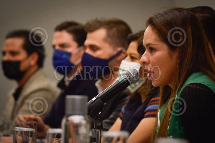 María José Alcalá, exclavadista y diputada del PVEM, durante conferencia de prensa en la que pidió se respete el lugar de Paola Espinosa y los clavadistas para participar en los Juegos Olímpicos de Tokio, luego de no aparecer en la lista oficial de la Federación Mexicana de Natación.