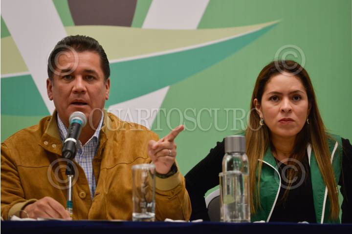 Carlos Puente, diputado del PVEM, y Karen Castrejón Trujillo, dirigente nacional PVEM, ofrecieron conferencia de prensa en la que pidió se respete el lugar de Paola Espinosa y los clavadistas para participar en los Juegos Olímpicos de Tokio, luego de no aparecer en la lista oficial de la Federación Mexicana de Natación.