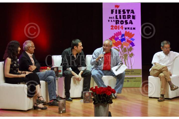 MÉXICO, D.F., 23ABRIL2014.- Los escritores Verónica Murguía, Francisco Hinojosa, Jaime Alonso Sandoval, Benito Taibo y Federico Navarrete compartieron una discusión en torno a la literatura juvenil en la Sala Nezahualcóyotl. “Si tu lees durante 60 años de tu vida sin fallar, podrás leer 3 mil 500 libros”, mencionó el moderador del panel, Benito Taibo al finalizar la plática. FOTO: MARÍA JOSÉ MARTÍNEZ /CUARTOSCURO.COM