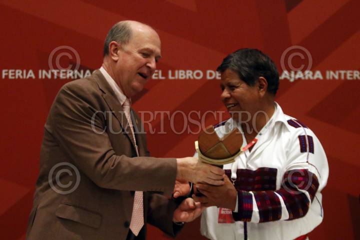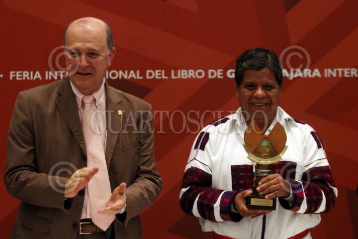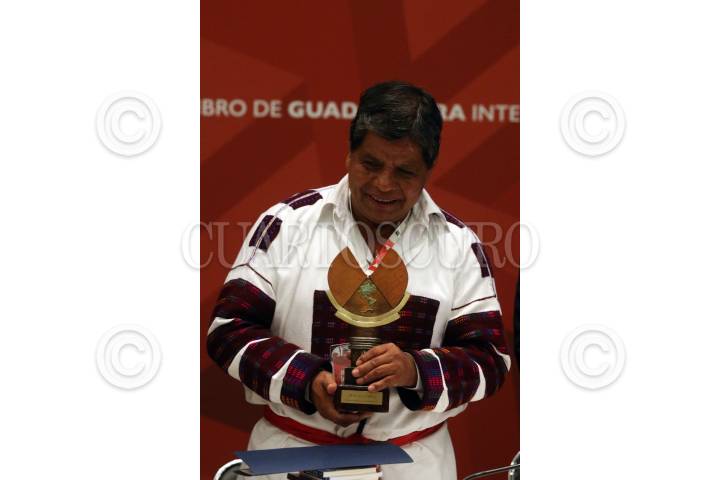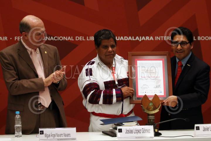 GUADALAJARA, JALISCO. 03DICIEMBRE2015.-El escritor de lengua tseltal de origen Chiapaneco Josías López Gómez, recibió el Premio de Literaturas Indígenas de América 2015 , esto en el marco de la edición 29 de la Feria Internacional del Libro de Guadalajara FIL, que tiene como país invitado de honor al Reino Unido. FOTO: FERNANDO CARRANZA GARCIA / CUARTOSCURO.COM