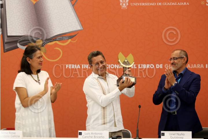 GUADALAJARA, JALISCO, 02DICIEMBRE2017.- Hubert Martínez Calleja fue reconocido con el Premio de Literaturas Indígenas, en el marco de la edición 31 de la Feria Internacional del Libro de Guadalajara (FIL), que se lleva a cabo en las instalaciones de la Expo y en donde el invitado de Honor es Madrid. FOTO: FERNANDO CARRANZA GARCIA / CUARTOSCURO.COM