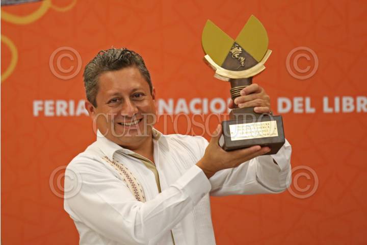 Luis Antonio Cache Briseño durante la entrega del Premio de Literaturas Indígenas de América 2022.