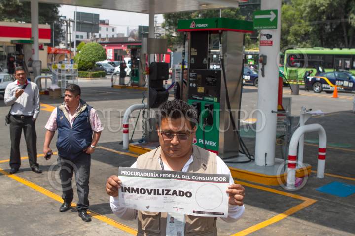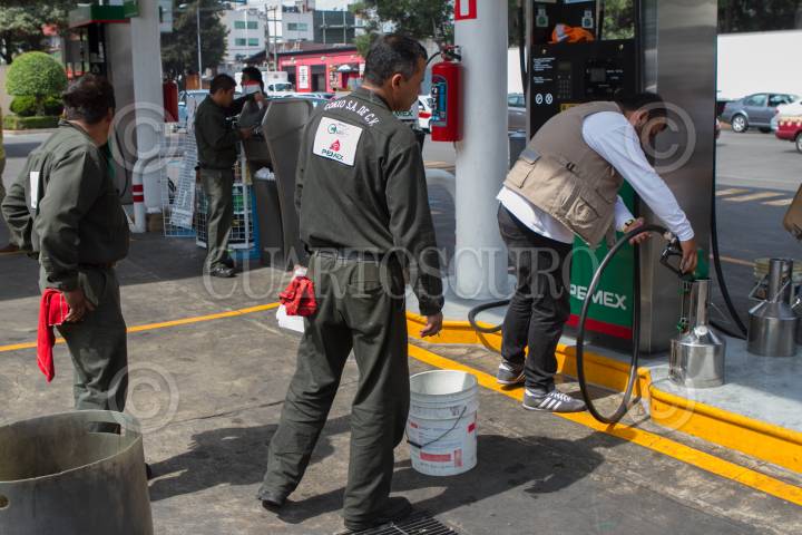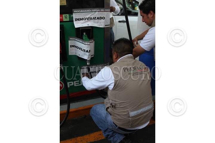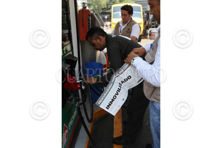 CIUDAD DE MÉXICO, 12ABRIL2016.- La gasolinera ubicada en la calle de Puente de La Morena y Patriotismo fueron verificadas sus bombas por parte de la Procuraduría Federal del Consumidor (Profeco), tras la revisión de sus bombas con varias jarras se determinó que los litros no eran de a litro, sin embargo las autoridades encabezadas por su titular Ernesto Nemer Álvarez, no colocaron los sellos correspondientes, ya que argumentaron que la diligencia seguía en curso, daban un estimado de seis horas para hacerlo. Los encargados de la gasolinera abrieron el servicio tras el operativo, lo que significa que los clientes que llegaban a despachar gas serían con litros incompletos, mientras la Profeco se decidía a aplicar la ley. FOTO: MOISÉS PABLO /CUARTOSCURO.COM