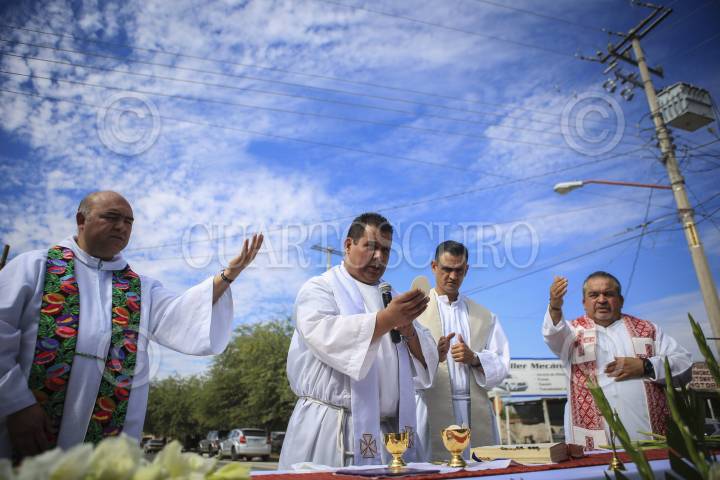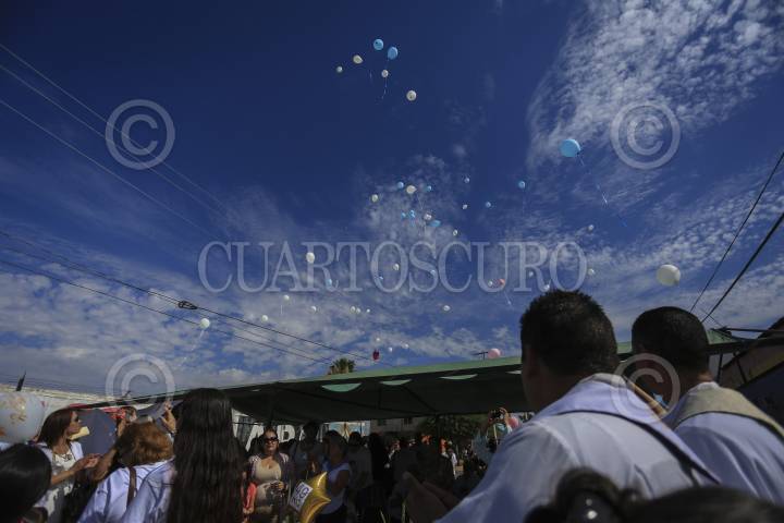 HERMOSILLO, SONORA, 05JUNIO2015.- Se llevó a cabo una misa en memoria de los niños que perdieron la vida durante el incendio de la guardería ABC hace ya seis años. Con la asistencia de padres y madres de niños que perecieron en la tragedia, que aún no ha sido esclarecida por parte de las autoridades y a la fecha nadie esta detenido por estos hechos. La liturgia se celebró afuera de las instalaciones de la estancia infantil donde ocurrió la tragedia el 5 de junio de 2009. Por la tarde serán recodados los 49 bebes fallecidos con una marcha multitudinaria en la capital de Sonora. FOTO: MARGARITA GARCÍA /CUARTOSCURO.COM