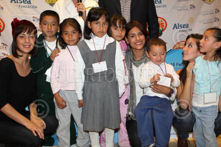 MÉXICO, D.F., 15FEBRERO2011.- La actriz Gabriela de la Garza, Alicia Mier y Terán, Armando Torrado y las actrices Liz Gallardo y Erendira Ibarra durante la entrega de un donativo de 400 mil pesos de Fundación Alsea al Comedor Santa María A.C., asociación encargada de ayudar a menores de entre 4 meses y 16 años de edad en situación de pobreza extrema. FOTO: RODOLFO ANGULO/CUARTOSCURO.COM