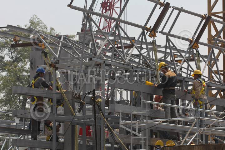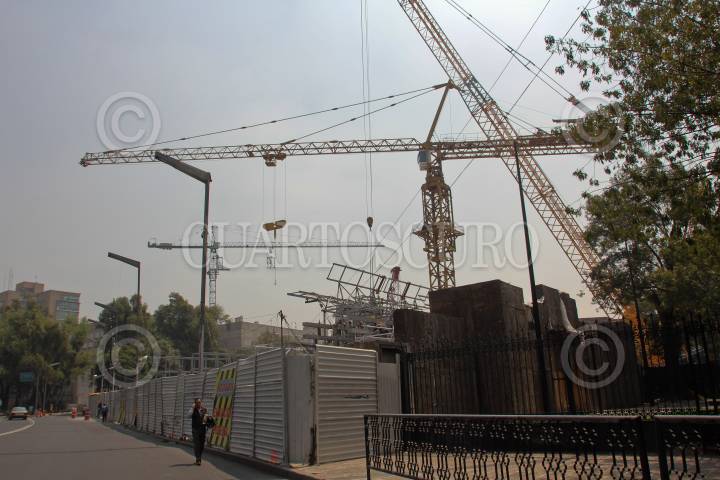 MÉXICO, D.F., 27SEPTIEMBRE2011.- Trabajadores continúan con los trabajos de la obra "Estela de Luz", que se encuentra frente a la puerta de los Leones del Bosque de Chapultepec. FOTO: SAÚL LÓPEZ/CUARTOSCURO.COM