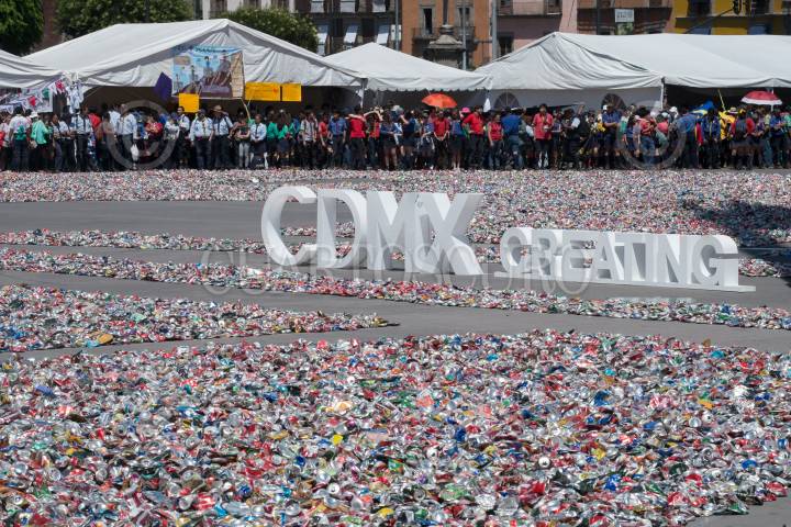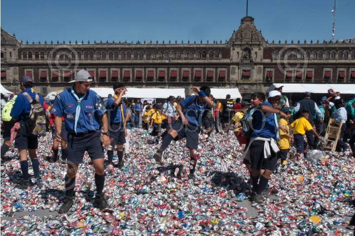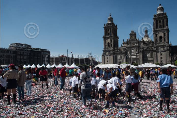 CIUDAD DE MÉXICO, 24MARZO2018.- Miguel Ángel Mancera, Jefe de Gobierno de la Ciudad de México, presidió la edición 14 de la formación de la flor de Liz más grande del mundo en el Zócalo Capitalino. Esta es el emblema scout mundial y representa compromiso, identidad y hermandad, de más de 40 millones de jóvenes del mundo. Un total de un millón 485 mil latas aplastadas dieron forma a esta flor. FOTO: ANDREA MURCIA /CUARTOSCURO.COM
