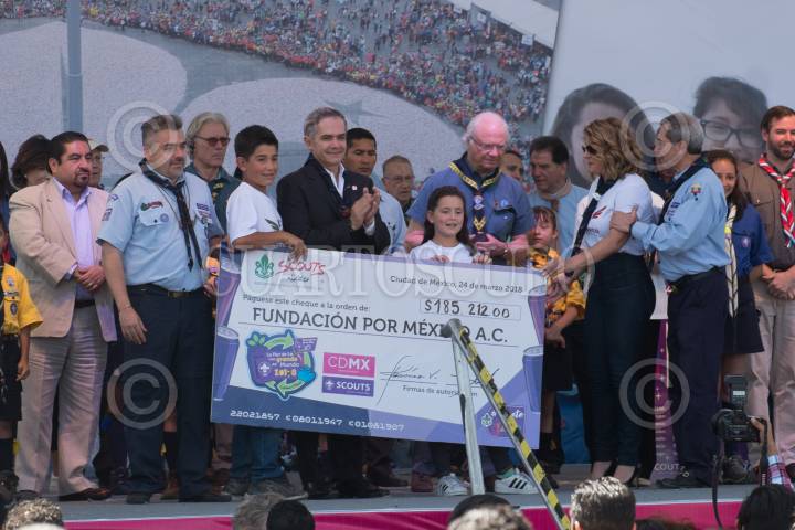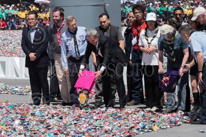 CIUDA DE MÉXICO, 24MARZO2018.- Miguel Ángel Mancera, Jefe de Gobierno de la Ciudad de México, presidió la edición 14 de la formación de la flor de Liz más grande del mundo la cual es el emblema scout mundial y representa compromiso, identidad y hermandad, de más de 40 millones de jóvenes del mundo. Un total de un millón 485 mil latas aplastadas dieron forma a esta flor. FOTO: ANDREA MURCIA /CUARTOSCURO.COM